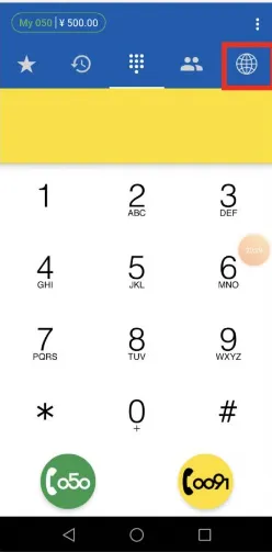 - My050アプリの地球儀マークをタップ