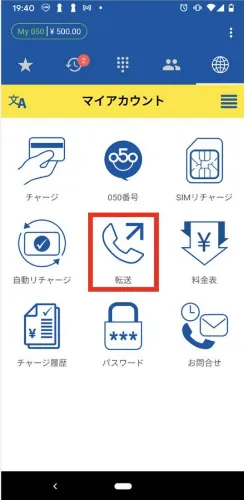- マイアカウントの「転送」をタップ