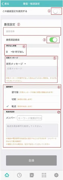 - ⑦ 転送先番号を設定